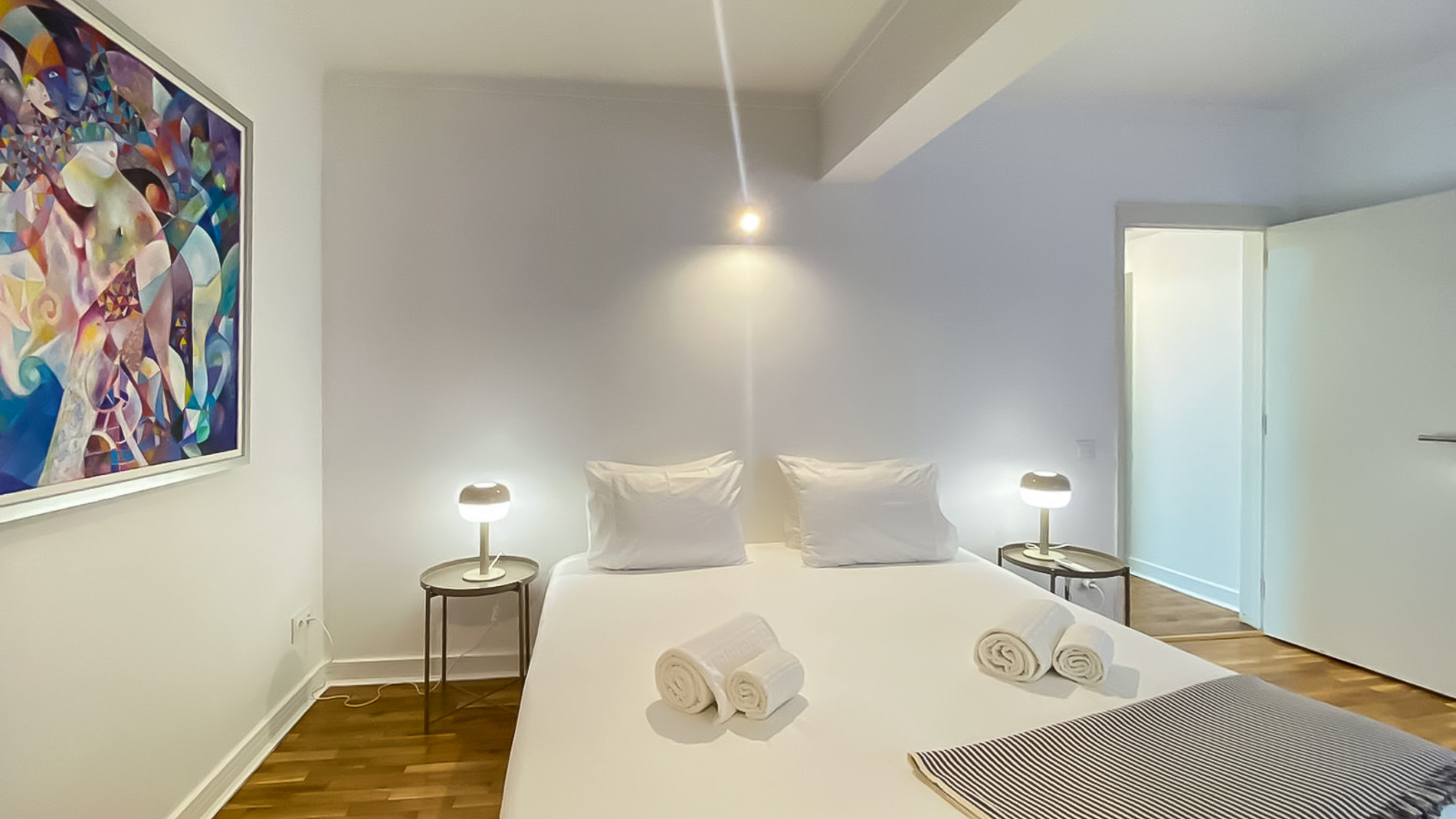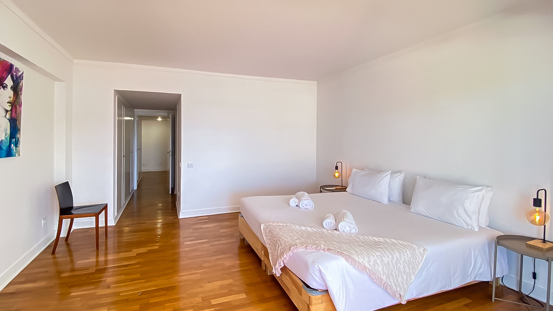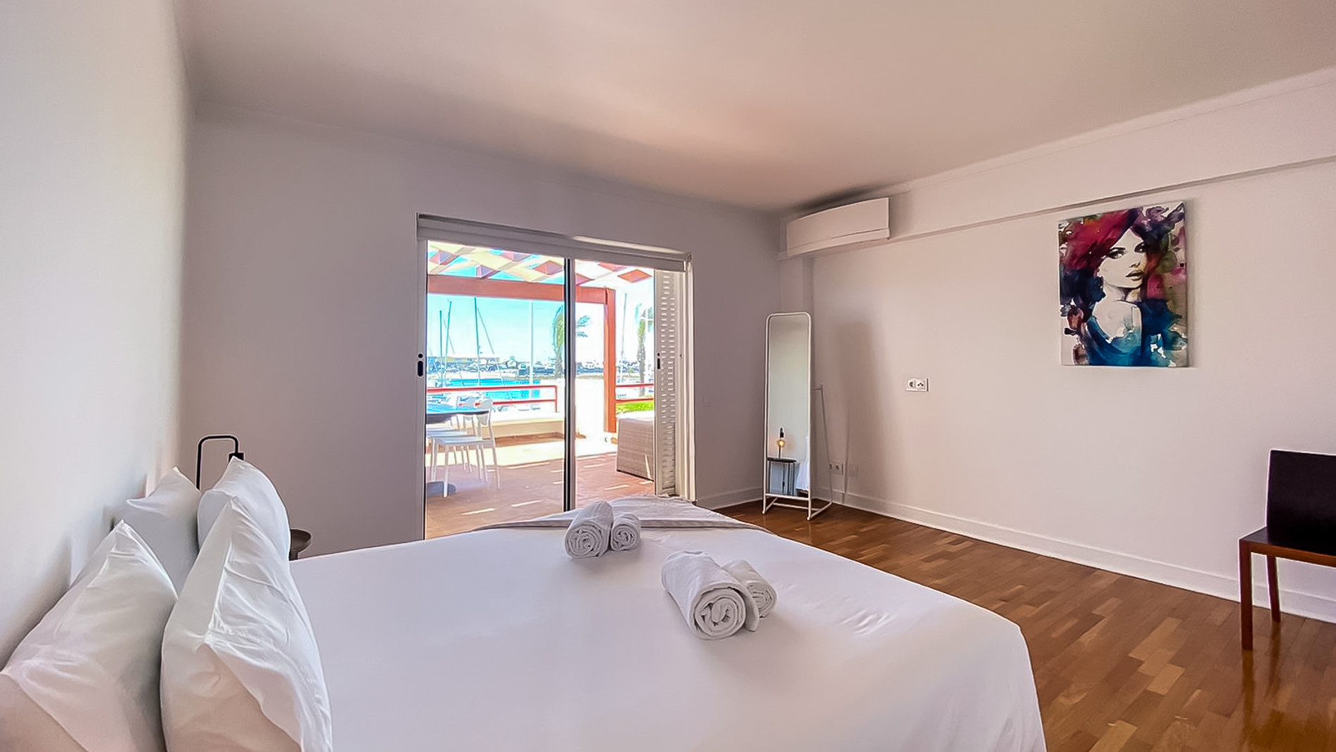 O quarto principal oferece um ambiente espaçoso e sereno para relaxar e rejuvenescer. Acorde com os sons suaves da marina e delicie-se com a casa de banho privada, com cabina de duche ao nível do chão.