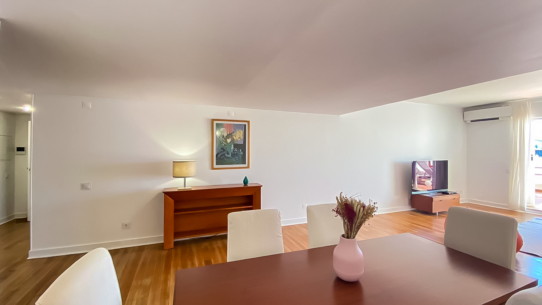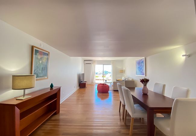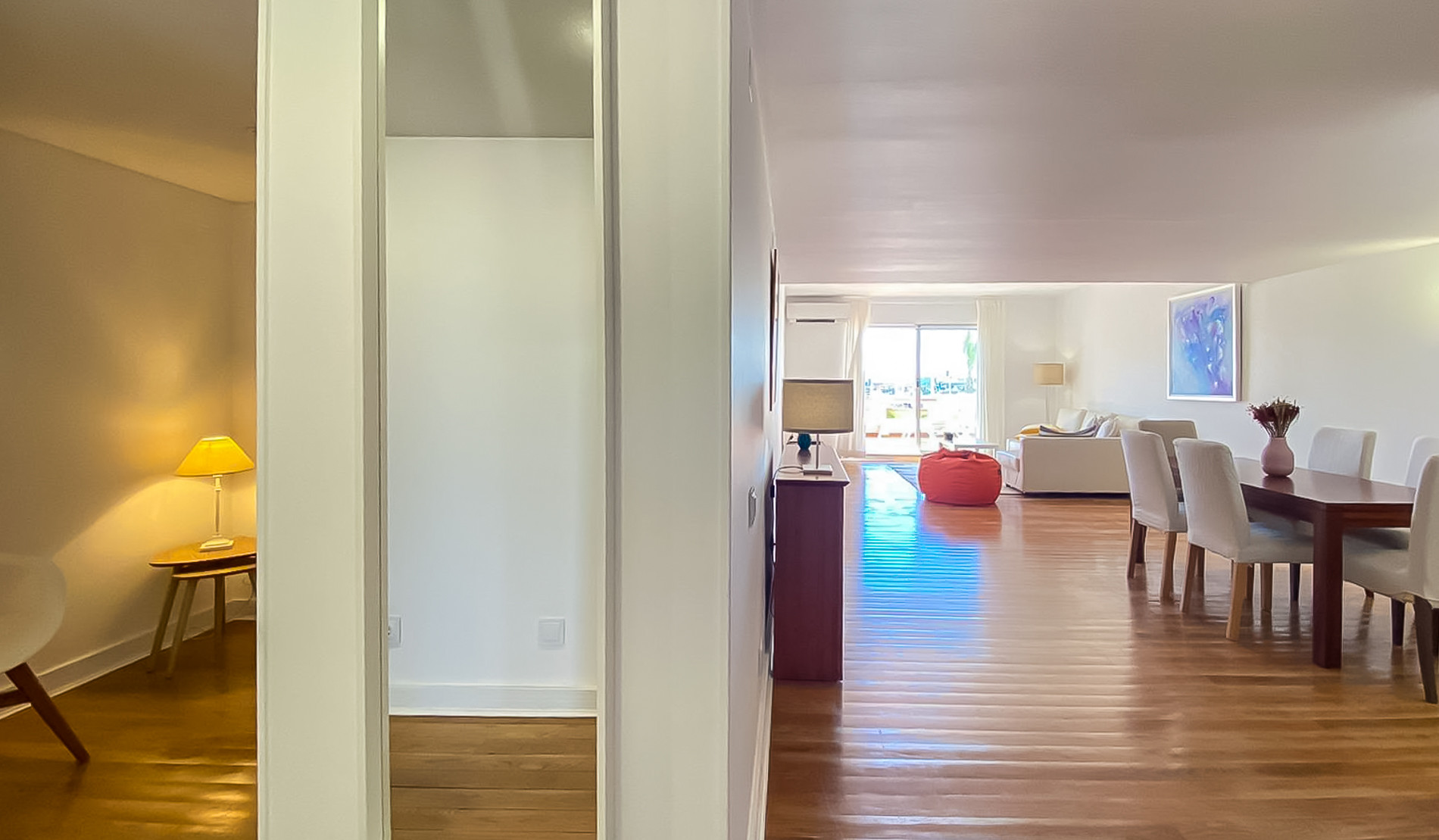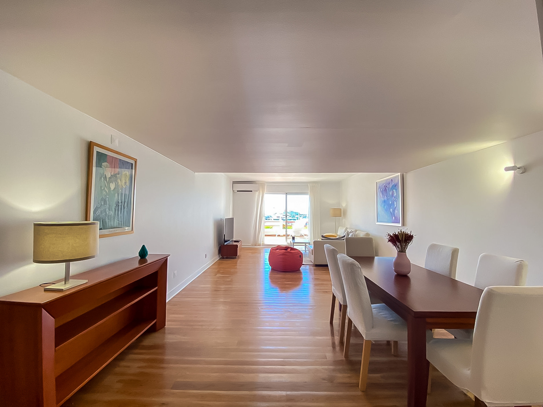 Ao entrar, poderá observar um apartamento amplo e espaçoso com decoração minimalista e sensação de tranquilidade. A sala de estar super espaçosa cativa-o imediatamente pela sua vastidão, permitindo que a luz natural percorra todo o apartamento. Através de amplas janelas, terá vistas deslumbrantes da marina de Vilamoura, criando um cenário sereno e pitoresco para as suas férias.