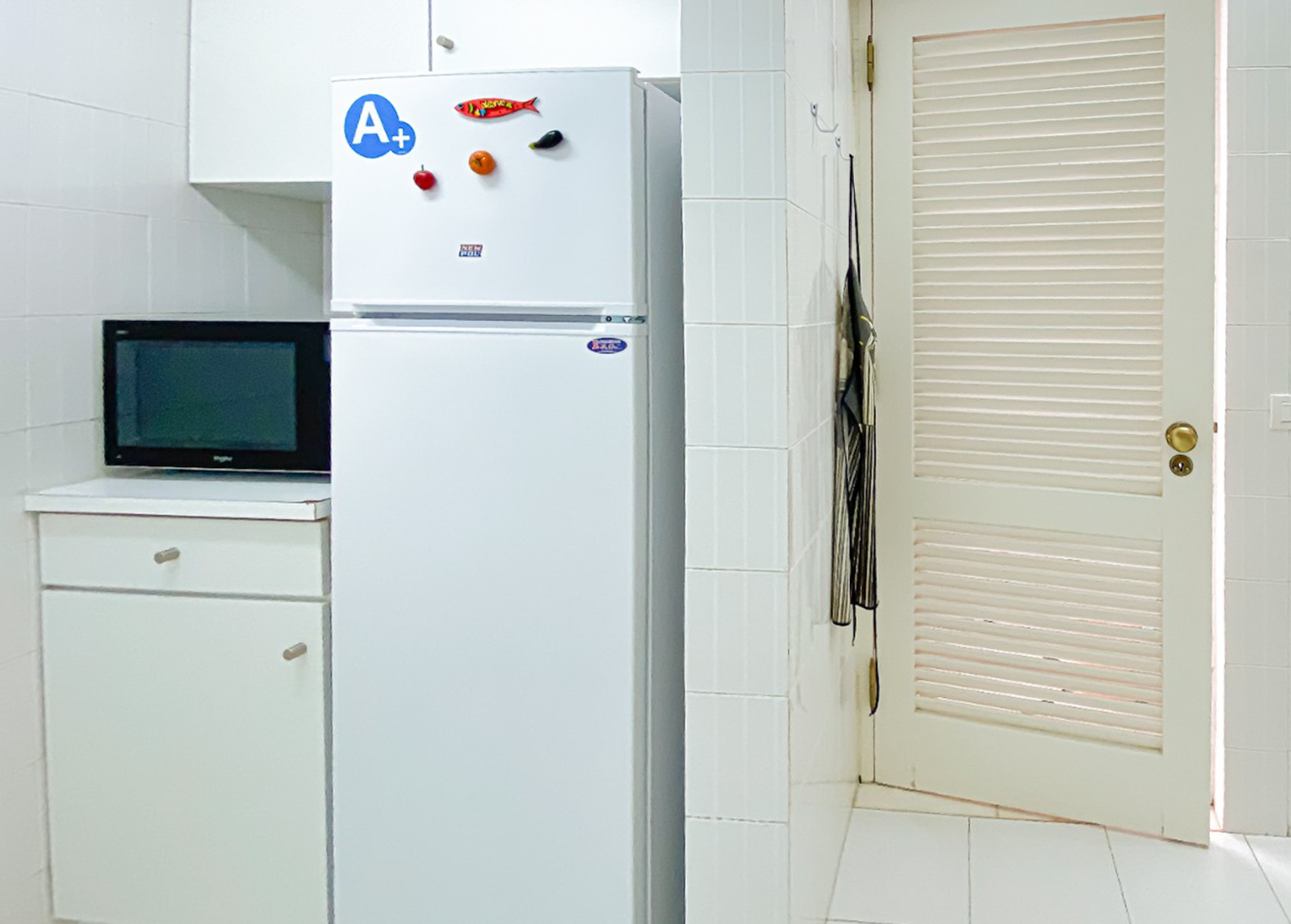 The apartment has a fully equipped kitchen, complete with all necessary appliances, allowing you to prepare your own meals, and includes a spacious dining area.