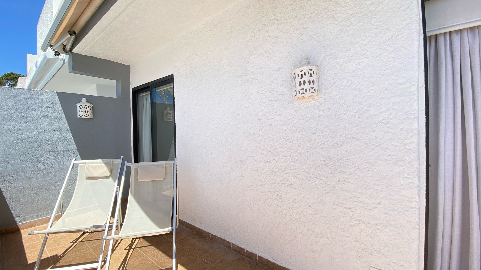 On the balcony, enjoy the stunning view of the pool and surroundings. This outdoor space is perfect for having your breakfast or enjoying a cocktail at the end of the day while the sun sets over Vilamoura Marina.